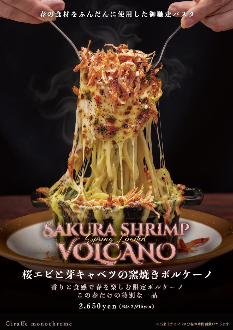 春の味覚桜エビ、春の訪れ感じる芽キャベツの旨みを存分に閉じ込めた【桜エビと芽キャベツの釜焼きボルケーノ】